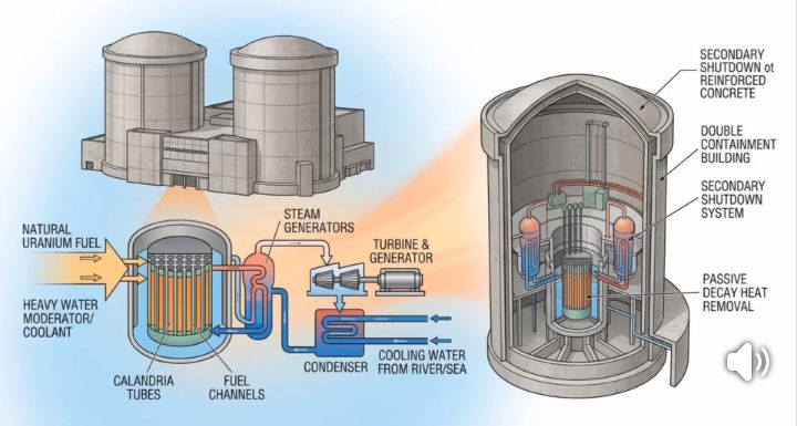 1. पहला चरण (PHWR – प्रेसुराइज्ड हैवी वॉटर रिएक्टर)