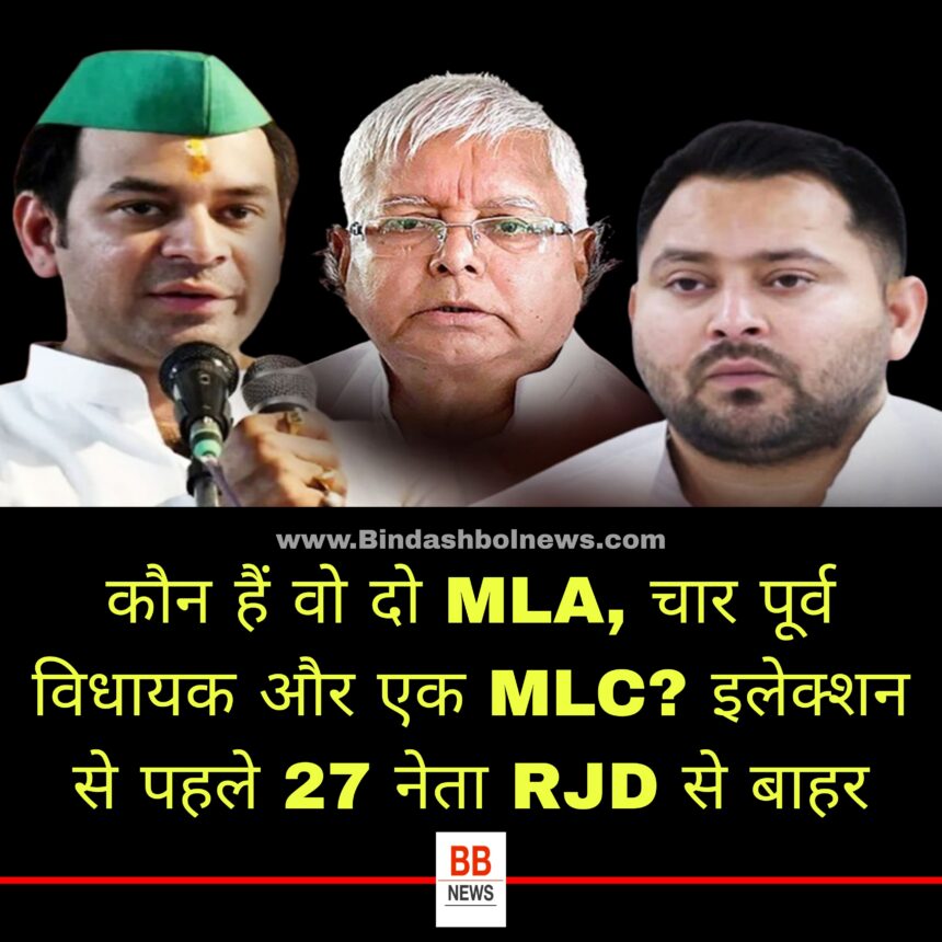 Bihar Election: बिहार में विधानसभा चुनाव के लिए 6 और 11 नवंबर को वोटिंग होगी। उससे पहले राष्ट्रीय जनता दल (आरजेडी) ने अपने कुछ नेताओं पर कार्रवाई की है। पार्टी ने मौजूदा विधायकों और पूर्व विधायकों सहित 27 नेताओं को निष्कासित कर दिया है। इस एक्शन की वजह पार्टी विरोधी गतिविधियां हैं।