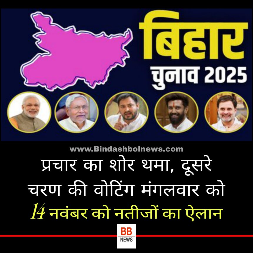 Bihar Election : बिहार विधानसभा चुनाव2025 के दूसरे चरण में 20 जिलों की 122 सीटों पर मतदान होगा. इसके लिए आज शाम प्रचार का शोर थम गया है. 11 नवंबर को वोट डाले जाएंगे. आखिरी दिन सभी दलों के नेताओं ने पूरी ताकत झोंक दी. पहले फेज में 6 नवंबर को 121 सीटों पर वोटिंग हो चुकी है. 14 नवंबर को सभी 243 सीटों के नतीजे घोषित होंगे.