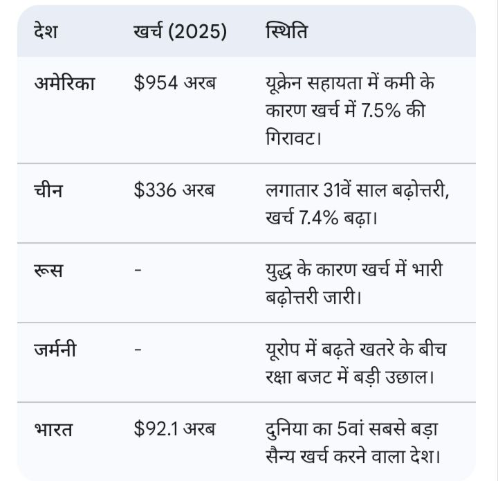* रक्षा बजट: भारत ने 2025 में अपने सैन्य खर्च में 8.9% का बड़ा इजाफा किया।