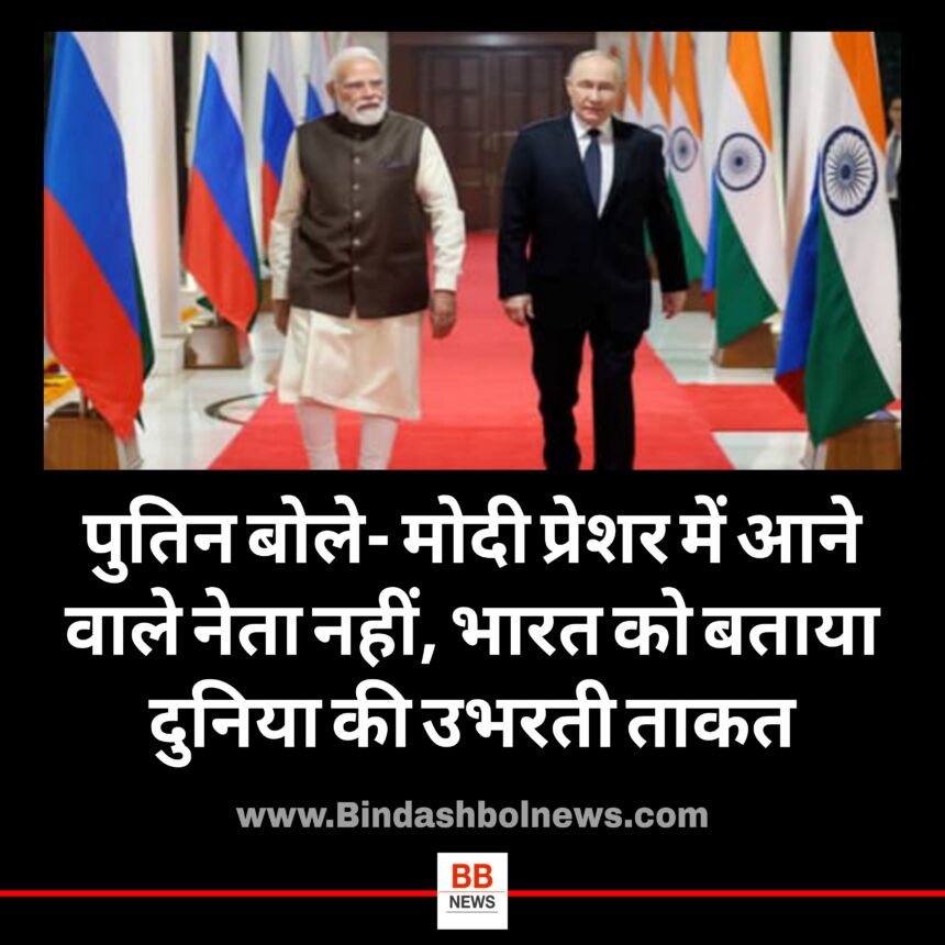 India Russia : रूस के राष्ट्रपति व्लादिमीर पुतिन भारत पहुंच चुके हैं। दिल्ली आने से पहले आज तक को दिए एक इंटरव्यू में पुतिन ने भारत को ग्रेट पावर बताते हुए साफ कहा कि पीएम मोदी किसी के प्रेशर में आने वाले नेताओं में से नहीं हैं। इंटरव्यू के दौरान जब पुतिन से पूछा गया कि क्या अमेरिका भारत पर टैरिफ लगाकर पॉलिटिकल प्रेशर बनाने की कोशिश कर रहा है, तो उन्होंने कहा कि भारत अपनी इंडिपेंडेंट पॉलिसी पर चलने वाला देश है। पूरी दुनिया में भारत एक बड़ी ताकत के रूप में उभर रहा है।