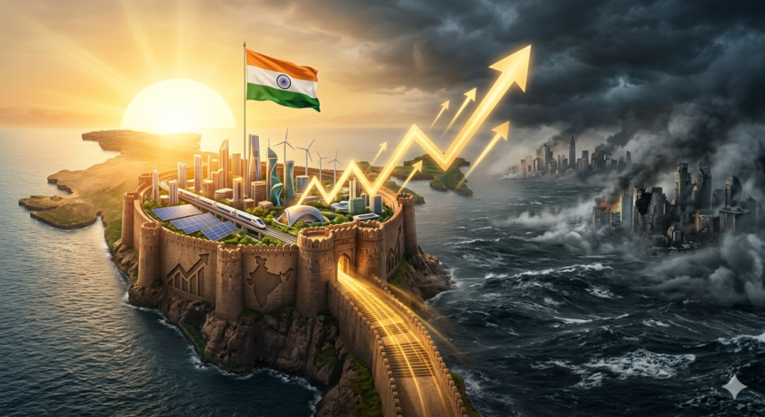 भारत की रणनीतिक ताकत: व्यापार विविधीकरण, नीतिगत सुधार और ‘विकसित भारत @2047’ विजन ने अर्थव्यवस्था को वैश्विक झटकों से अलग रखा। निजी क्षेत्र का नेतृत्व, युवा कार्यबल और प्रौद्योगिकी-आधारित निवेश भविष्य की गारंटी हैं। चुनौतियां जैसे ऊर्जा आयात पर निर्भरता और निवेश अनिश्चितता बनी हुई हैं, लेकिन वित्तीय स्थान और मौद्रिक नीति के सहारे सरकार इनका मुकाबला कर सकती है।