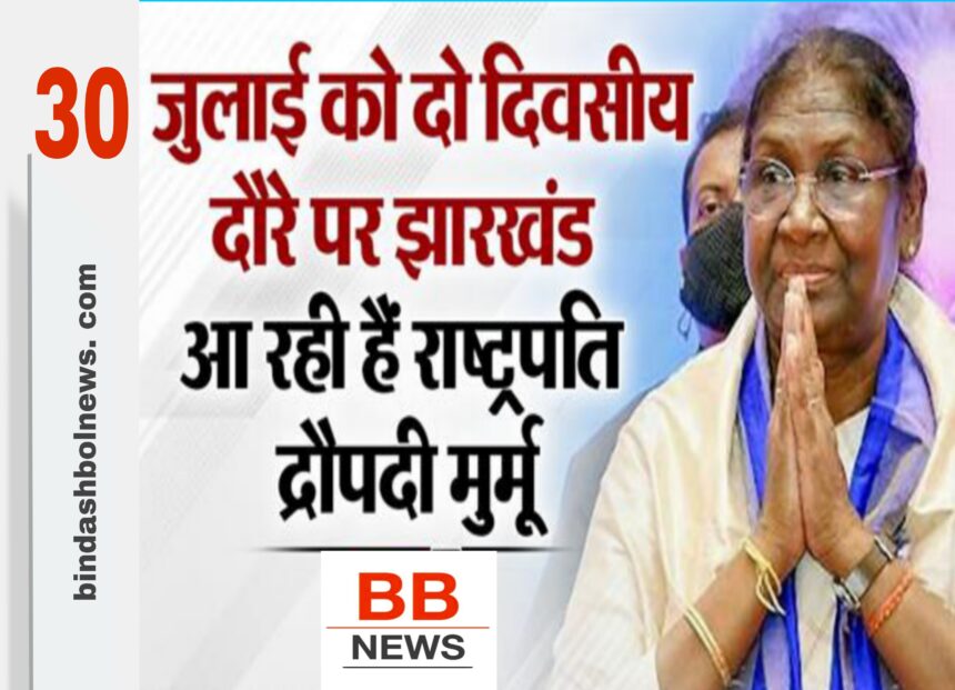 राष्ट्रपति द्रौपदी मुर्मू 31 जुलाई को दो दिवसीय झारखंड दौरे पर आ रही हैं. पहले दिन यानी 31 जुलाई को एम्स, देवघर के दीक्षांत समारोह में शिरकत करेंगी. उसी दिन रांची लौटकर राजभवन में रात्रि विश्राम करेंगी. अगले दिन 1 अगस्त को धनबाद के आईआईटी-आईएसएम के दीक्षांत समारोह में बतौर मुख्य अतिथि शामिल होंगी. उनके झारखंड दौरे को लेकर पूरा प्रशासनिक महकमा रेस है. तीनों शहरों में सुरक्षा के पुख्ता इंतजाम किए गए हैं.