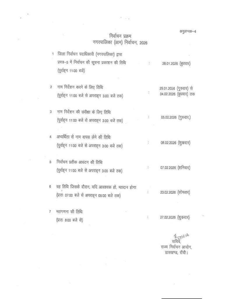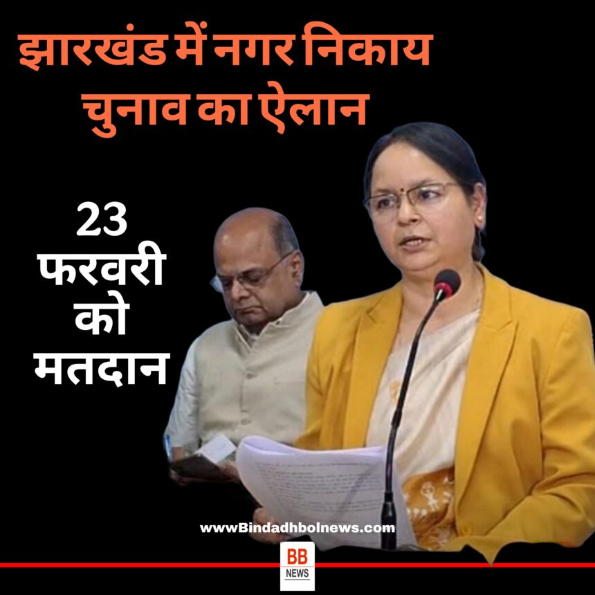 Jharkhand Nagar Nikay Election: झारखंड में लंबे समय से प्रतीक्षित नगर निकाय चुनावों की तारीखों का आधिकारिक ऐलान हो गया है। राज्य निर्वाचन आयुक्त अलका तिवारी ने राजधानी रांची में आयोजित एक प्रेस कॉन्फ्रेंस के दौरान बताया कि राज्य की सभी नगर पालिकाओं, नगर निगमों और नगर परिषदों के लिए एक साथ चुनाव कराए जाएंगे।