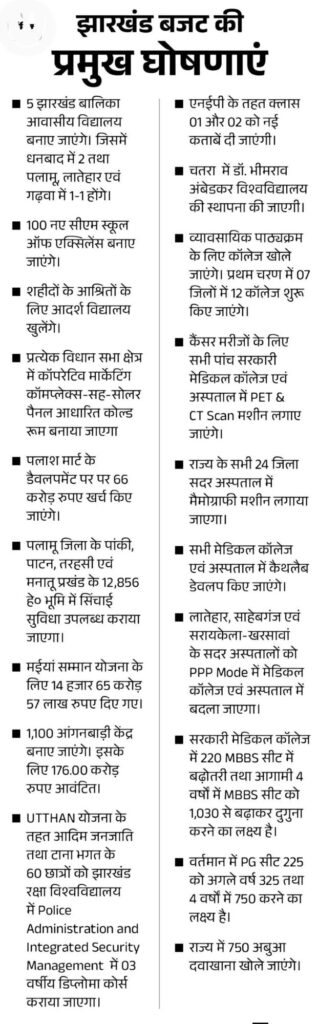 बजट में 5 नए बालिका आवासीय विद्यालयों की घोषणा की गई है….