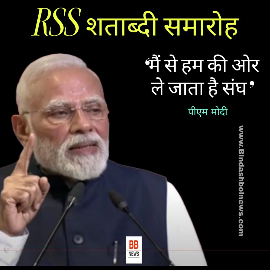 RSS : दिल्ली के डॉ. अंबेडकर अंतर्राष्ट्रीय केंद्र में बुधवार को राष्ट्रीय स्वयंसेवक संघ (आरएसएस) के शताब्दी समारोह का आयोजन किया गया। इस कार्यक्रम में संघ के वरिष्ठ पदाधिकारियों के साथ साथ बीजेपी के वरिष्ठ नेता और देश के प्रधानमंत्री नरेंद्र मोदी भी मौजूद रहे। पीएम मुख्य अतिथि के रूप में इस कार्यक्रम में शामिल हुए। कार्यक्रम को संबोधित करते हुए पीएम मोदी ने कहा, आरएसएस एक ऐसा संगठन है जो राष्ट्र निर्माण में मदद के लिए चरित्र निर्माण पर ध्यान केंद्रित करता है। यह लोगों में मैं के बदले हम की भावना पैदा करता है।