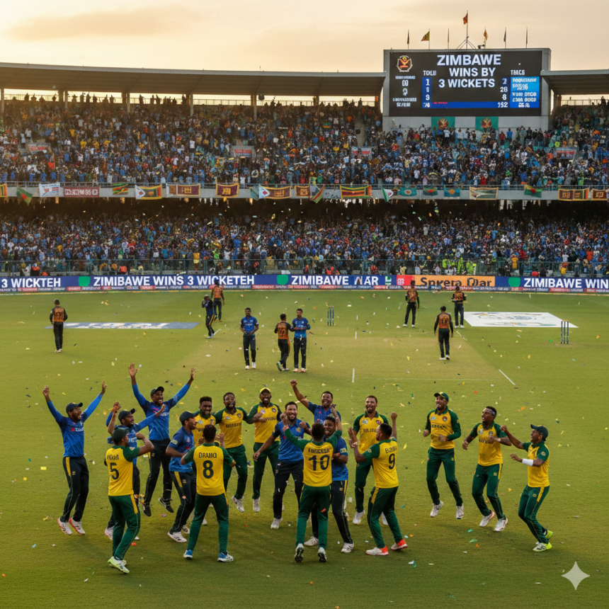 T20 World Cup 2026 : कोलंबो के आर प्रेमदासा स्टेडियम में 13 फरवरी 2026 को खेले गए टी20 वर्ल्ड कप के ग्रुप बी के मैच में जिम्बाब्वे ने बड़ा उलटफेर करते हुए ऑस्ट्रेलिया को करारी शिकस्त दी. इसी के साथ जिम्बाब्वे ने टूर्नामेंट में लगातार दूसरी जीत हासिल की. इससे पहले उसने आमोन की टीम को भी हराया था. टी20 वर्ल्ड कप में ऑस्ट्रेलिया के खिलाफ ये जिम्बाब्वे की दूसरी जीत है. इससे पहले जिम्बाब्वे ने साल 2007 में भी ऑस्ट्रेलिया को उलटफेर का शिकार बनाया था.