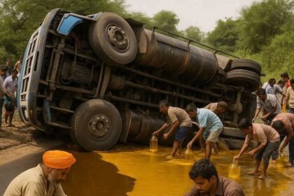 Accident in Ranchi: रांची के पास हाईवे पर पलटा सरसों तेल से भरा ट्रक, तेल लूटने उमड़ी भीड़