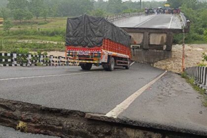 BRIDGE COLLAPSED : ‘इधर कुआं उधर खाई’… भारी बारिश में 2 तरफ से बह गया पुल, बीच में फंसा ट्रक