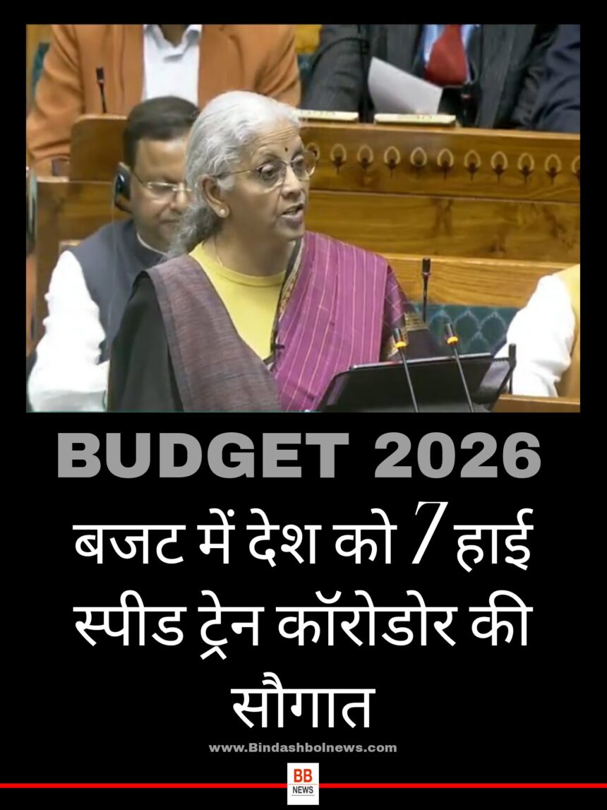 बजट में देश को हाई स्पीड ट्रेन कॉरोडोर की सौगात मिली है। वित्त मंत्री निर्मला सीतारमण ने कहा कि शहरों के बीच सात हाई स्पीड ट्रेन चलेंगी। इसमें पुणे-मुंबई, पुणे-हैदराबाद, हैदराबाद-बेंगलुरु, हैदराबाद-चेन्नई, चेन्नई-बेंगलुरु, दिल्ली-वाराणसी और वाराणसी-सिलिगुड़ी शामिल हैं।